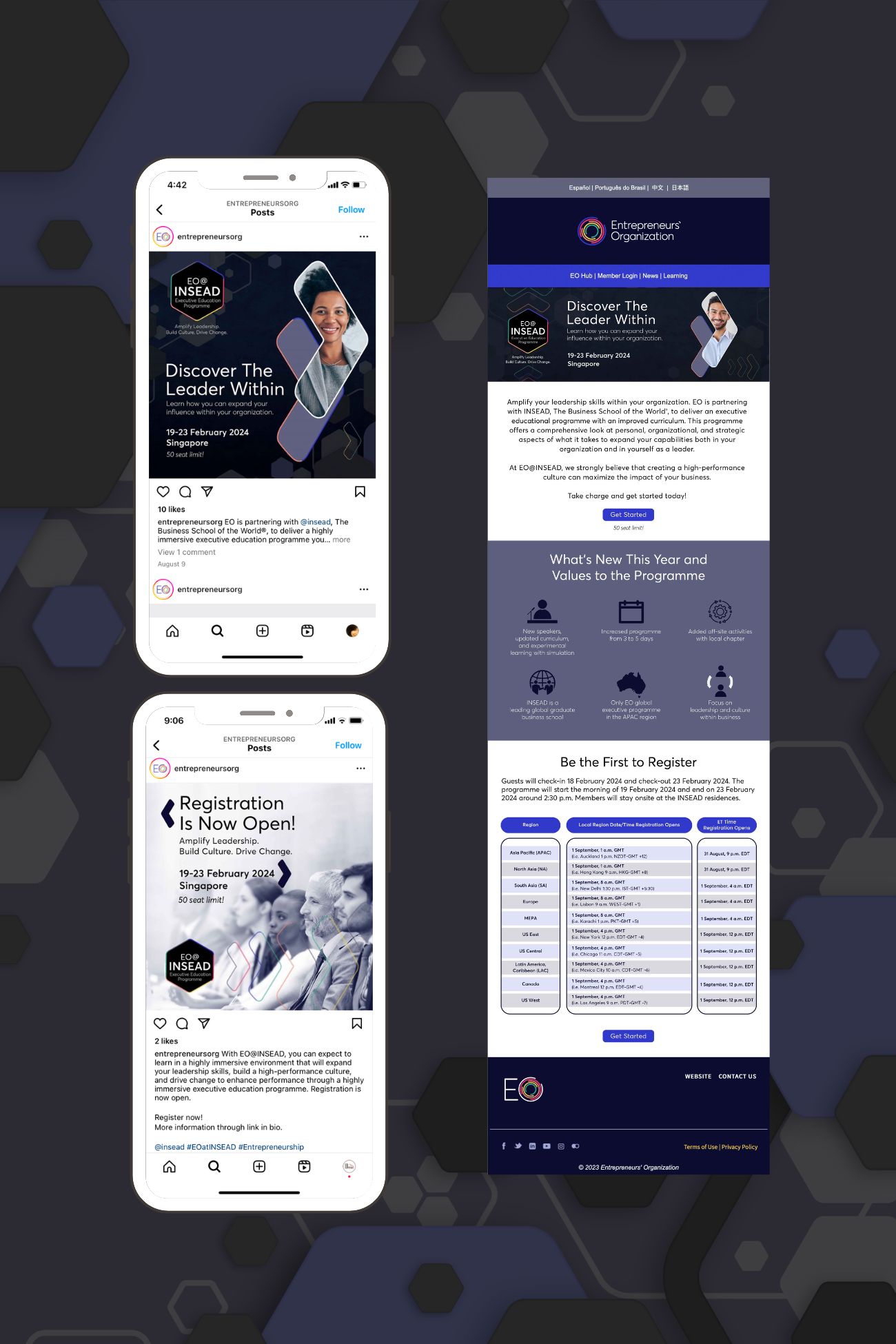 Led the creative strategy and campaign refresh for an underperforming executive education program for EO@INSEAD. Repositioned the program through updated key art, refined messaging, and a cohesive digital marketing approach designed to increase awareness, consideration, and enrollment among EO members. The campaign successfully reversed declining performance and resulted in the program selling out.